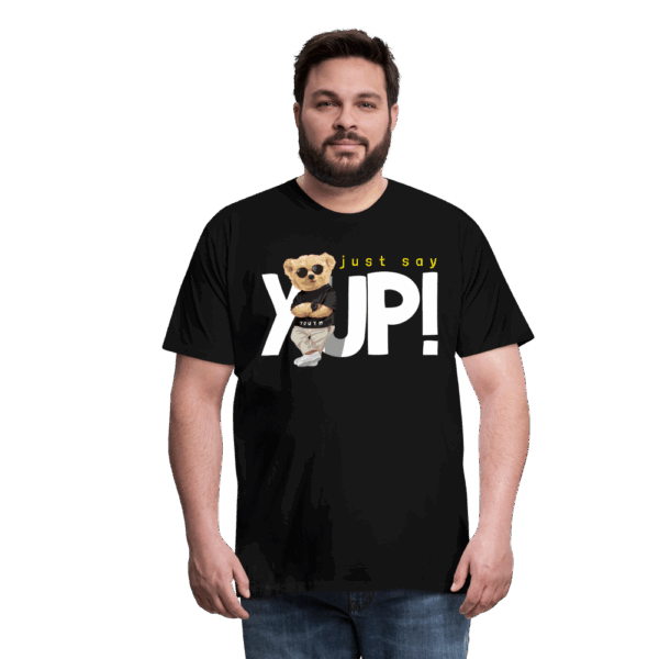 Hol dir jetzt unser Premium Männer T-Shirt mit dem niedlichen Teddy und der inspirierenden Botschaft „Just say Yup“ und erlebe Style und Komfort in Perfektion! 🐻💬 #Teddybär #JustSayYup #Positivität