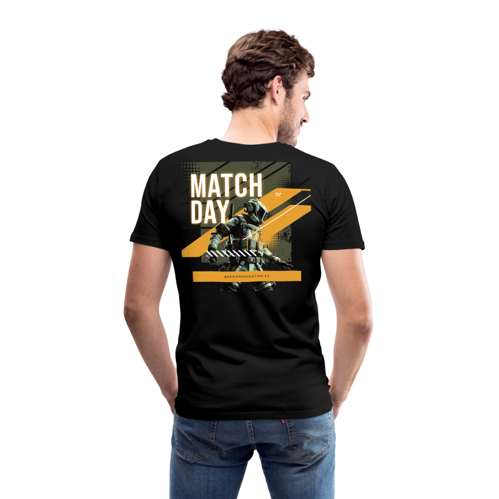 Entdecke unser exklusives Premium Männer T-Shirt, das speziell für Gamer entworfen wurde! Auf der Rückseite präsentiert es eine coole Spielerfigur mit der Aufschrift „Match Day“ – ein Must-Have für alle Gaming-Enthusiasten da draußen.